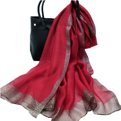 真丝丝巾女夏季薄款防晒长款桑蚕丝纱巾围巾红色旅游中年妈妈披肩